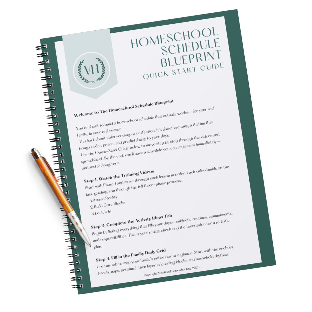 I run Vocational Homeschooling—a YouTube channel and coaching practice where I teach 47,000+ homeschool moms how to build sustainable, thriving homeschools.