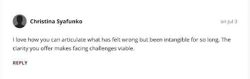 Before your course I was already making most of the changes you suggested, but going through your course has given me a clarity and confidence in the decisions I make that is allowing me to name and fine tune my framework. Even the term framework gives a clear picture of what I'm doing that allows me then to add and take away elements from the frame.